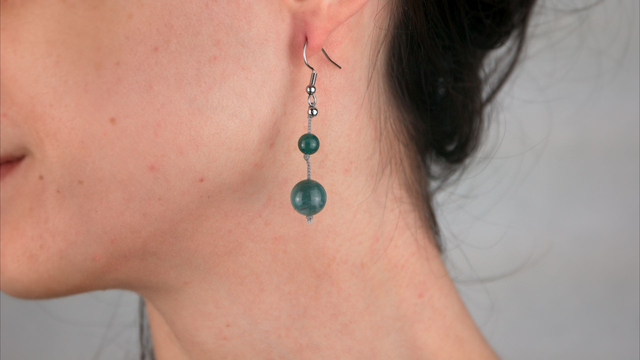 Boucles d'oreilles 2 agates mousse (vertes) sur soie tressée