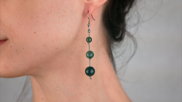 Boucles d'oreilles 3 agates mousse (vertes) sur soie tressée