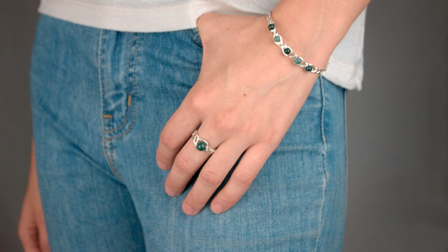 Bracelet tressé 5 agates mousse (vertes)