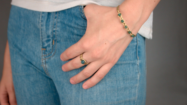 Chaque pierre étant unique, la photo n'est pas forcément contractuelle. Vous pouvez choisir les nuances et les associations que vous souhaitez. Je le propose en deux métaux différents : laiton (doré) et argent plaqué sur cuivre (argenté).