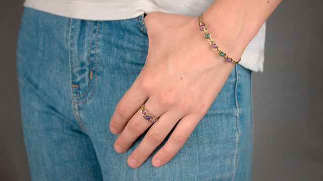Bracelet tressé 5 pierres : 3 améthystes et 2 agates mousse