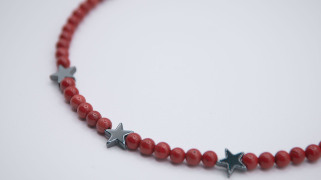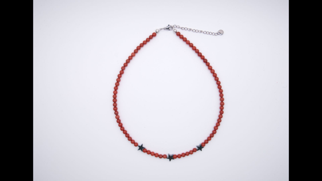 Collier en jaspe rouge orné de 3 étoiles noires en hématite.