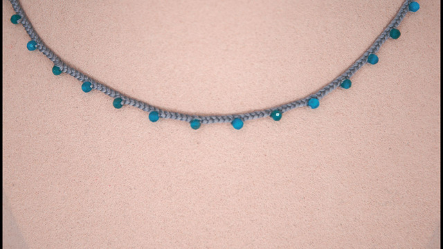 Collier ras de cou soie tressée et apatites facettées