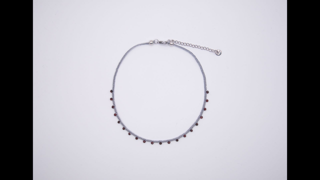 Collier ras de cou soie tressée et grenats facettés